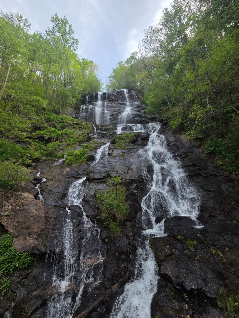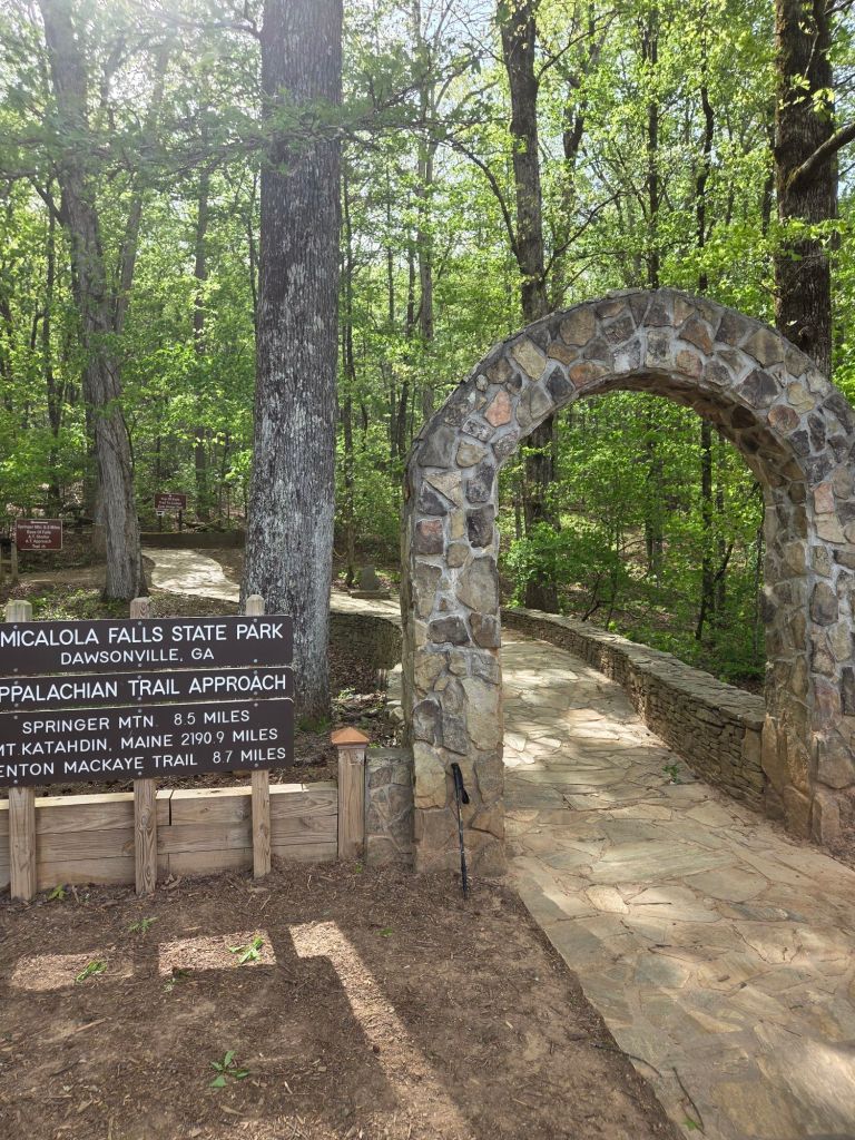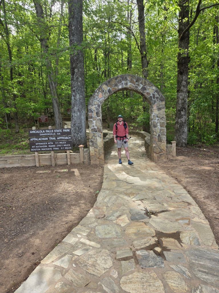 As we got in the car it got real for the first time, I looked down and my hands were shaking and I became extremely chatty (both signs of a nervous Jt). But I powered through and we took the hour and a half drive to Amicalola Falls, after checking in I was told I was hiker #2126 for this season, however Id have to wait till Damacus for my hiker tag. I then did the obligated photo shoot and began walking to the falls. Matt, Damsel, and I walked the first 175 steps to the base of the falls; we said our good byes, and I took the remainder 425 steps to the top of the falls. After catching my breath, I continued on the approach trail towards the Appalachian Trail.