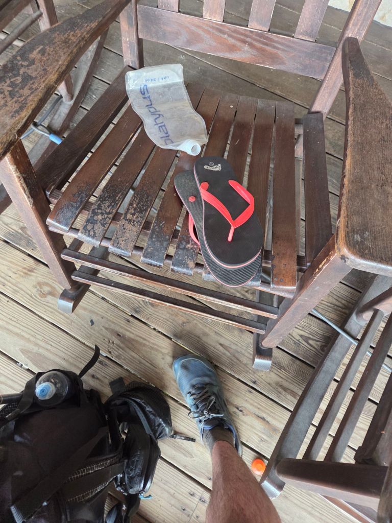 While at the summit we met a couple from Wisconsin who were very openly carrying firearms across there chest to “protect” themselves from bears. Outside of breaking the park rules they were chill. We then did the last 7 mile push to Newfound Gap where we were greated to trail magic (Mnt Dew, cinnamon buns, and a bannana) and we then took the free shuttle into Gatlinburg where I purchased new fuel, a mountain house meal to use as a daily bowl, and I found some sweet flip flops and a water blatter in a hiker box.