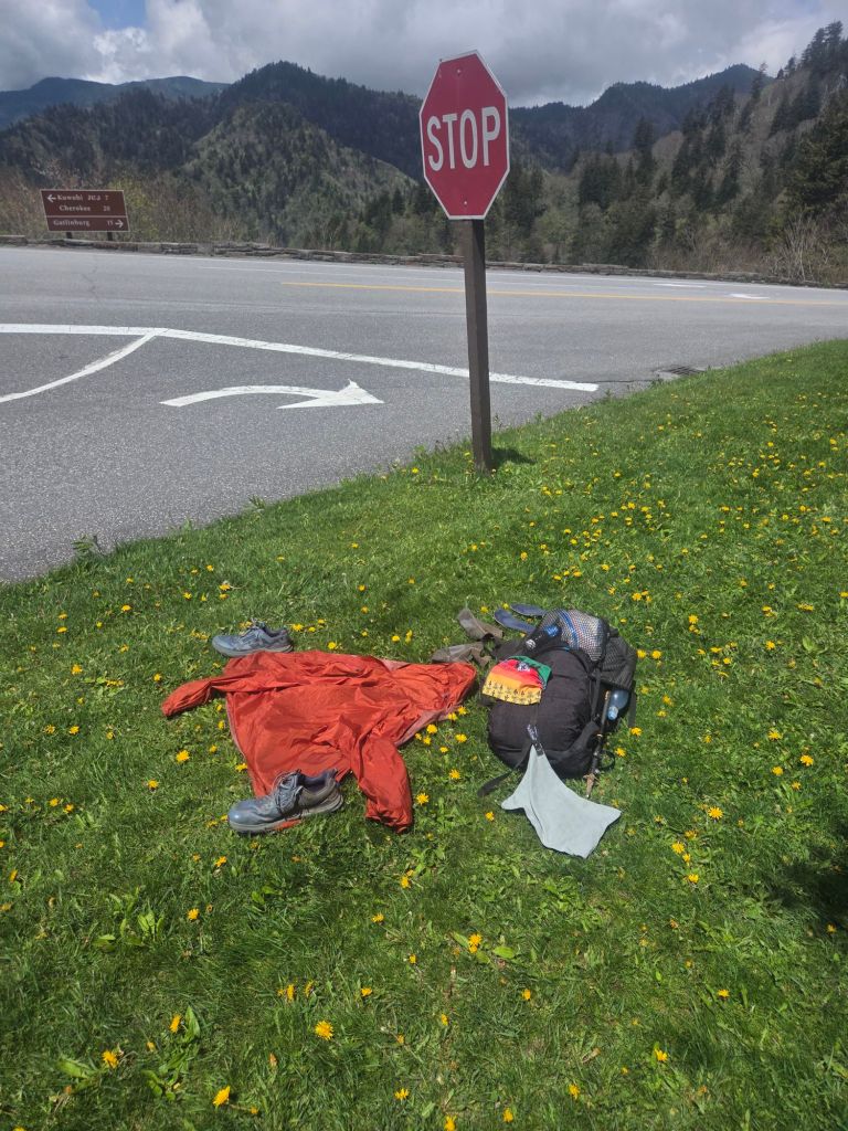 I then went to Cics pizza where I got some unlimited pizza, some salad (gotta eat healthy) and charged up the phone. I then took the shuttle back to New Found Gap where I am air drying my clothes as I wait for a box that I paid a shuttle to deliver for me (which was unnecessary in retrospect). After I pack up I am going to head to the closest shelter in 3 miles and call it a day.